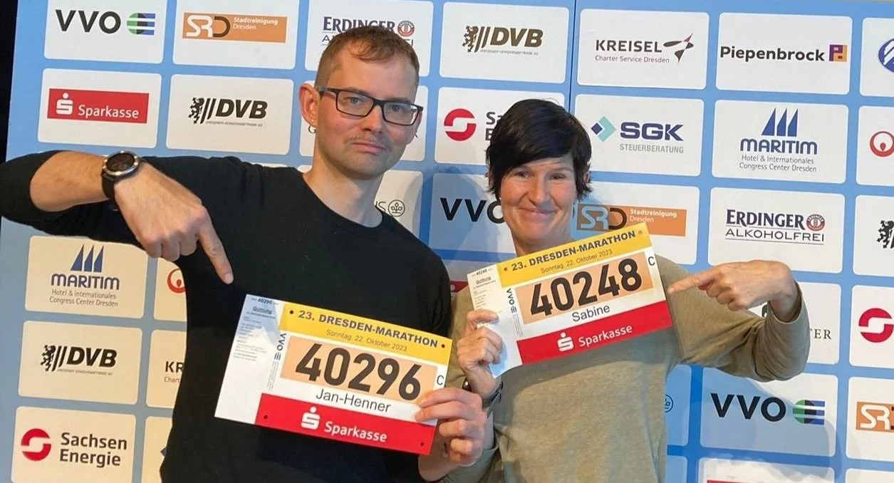 Sabine V. und Jan-Henner R. haben sich am Sonntag beim Dresden-Marathon selbst bewiesen: Eine akribische Vorbereitung wird belohnt. Sabine hat in 12 Wochen 630 Trainingskilometer fast komplett nach ihrem Plan durchziehen können und sich in ihrem dritten Marathon um gut 15 Minuten auf 4:15:39 h verbessert.